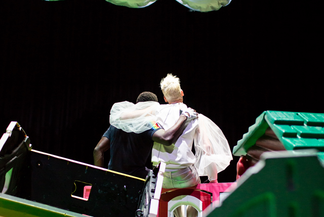 Hij/ hen wil graag met de scenes meespelen maar wordt door de andere performers steeds teruggestuurd naar zijn/ hen’s zangplek. Je zingt in de voorstelling een aantal nummers die gecomponeerd zijn door Reindier. En speelt livemuziek op een keyboard en ukelele.